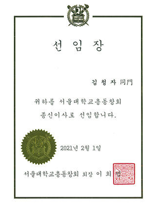 김청자 종신이사 선임장