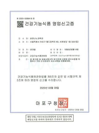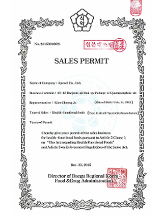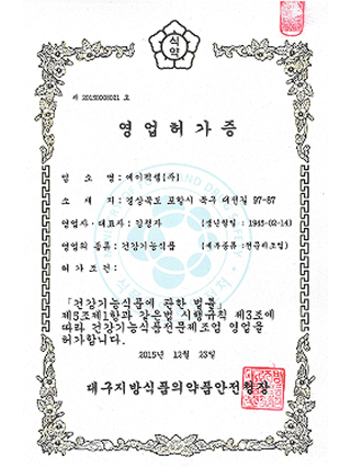 기능성 영업허가증