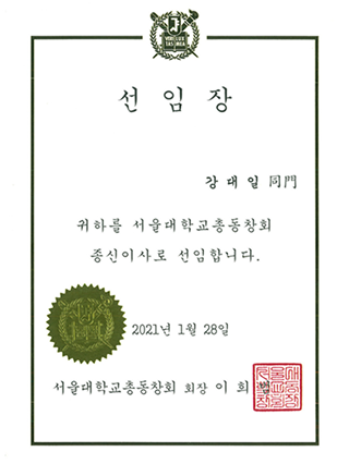 강대일 종신이사 선임장